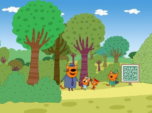 Продолжительность «Три кота» — 5 мин